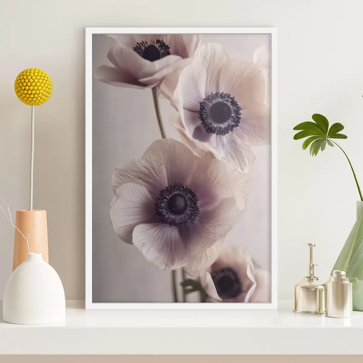 Poster Zarte Anemonen mit dunkler Mitte, pastellfarben Nr f45875