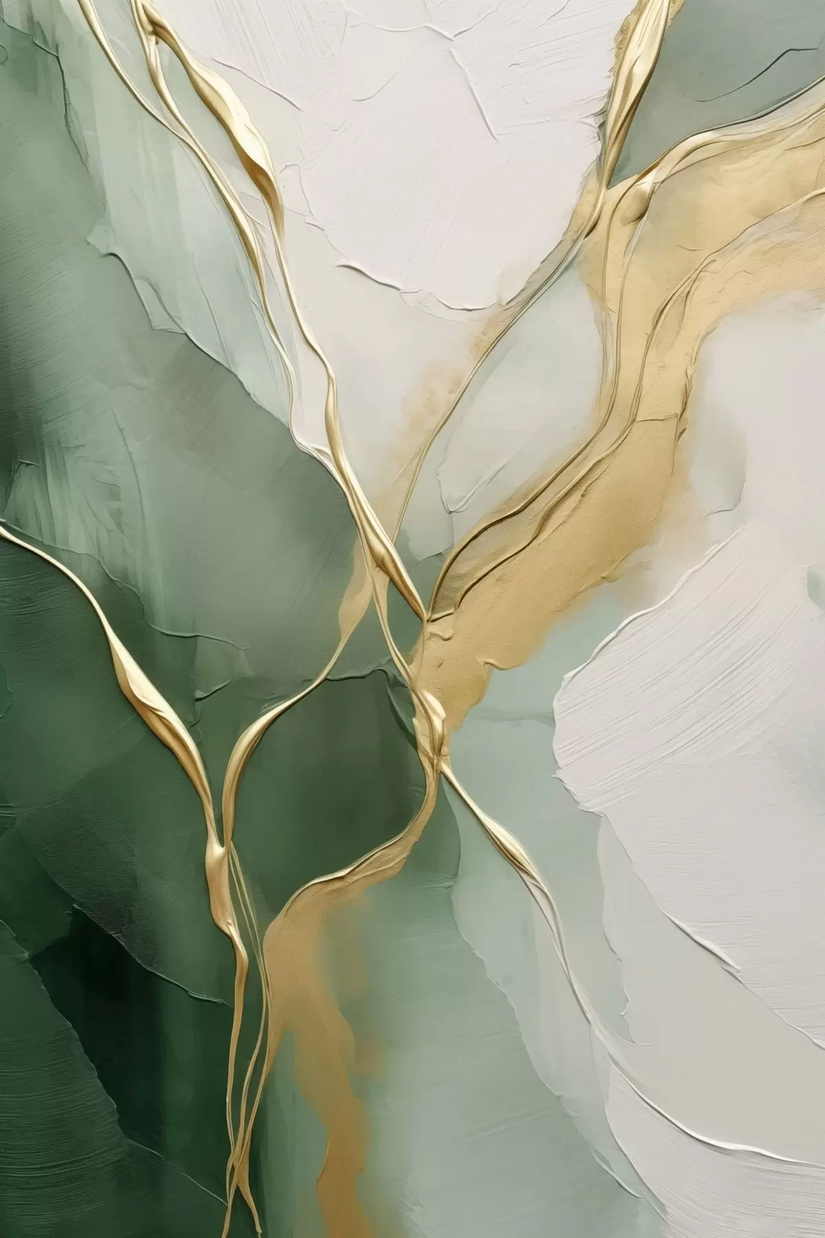 Poster Smaragdgrün-cremefarbene Abstraktion mit gelben Rinnsalen Nr f45887
