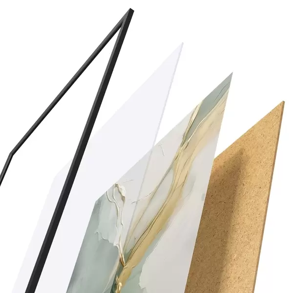 Das Poster besteht aus einem Rahmen, Plexiglas, einem gedruckten Bild und einer Rückwand aus Spanplatten. Dank der Halterungen auf der Rückseite kann das Poster sofort an die Wand gehängt werden.