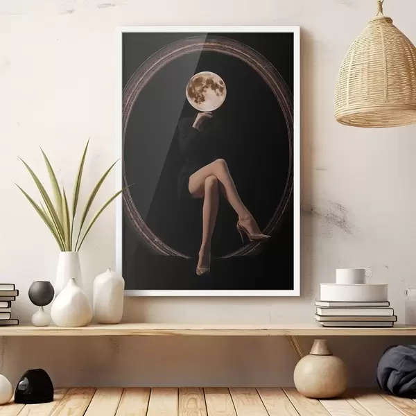 Poster Silhouette mit dem Mond als Gesicht, Minimalismus f45891