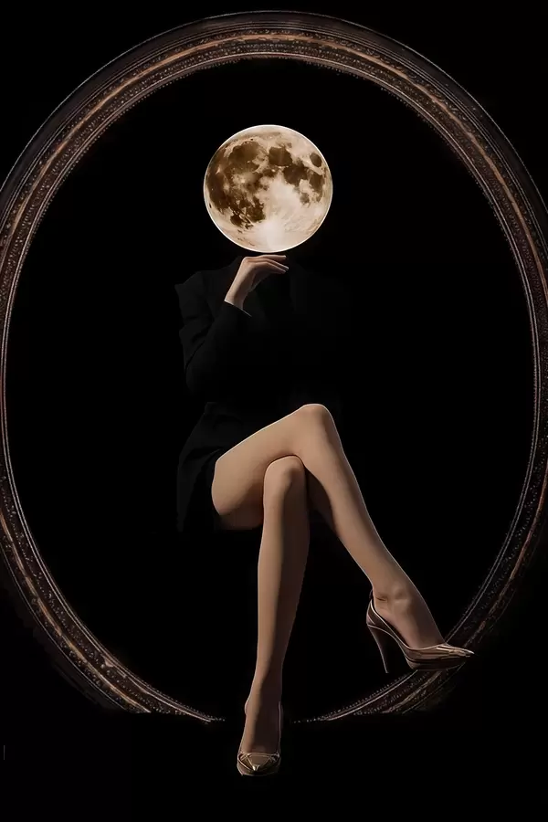 Poster Silhouette mit dem Mond als Gesicht, Minimalismus f45891