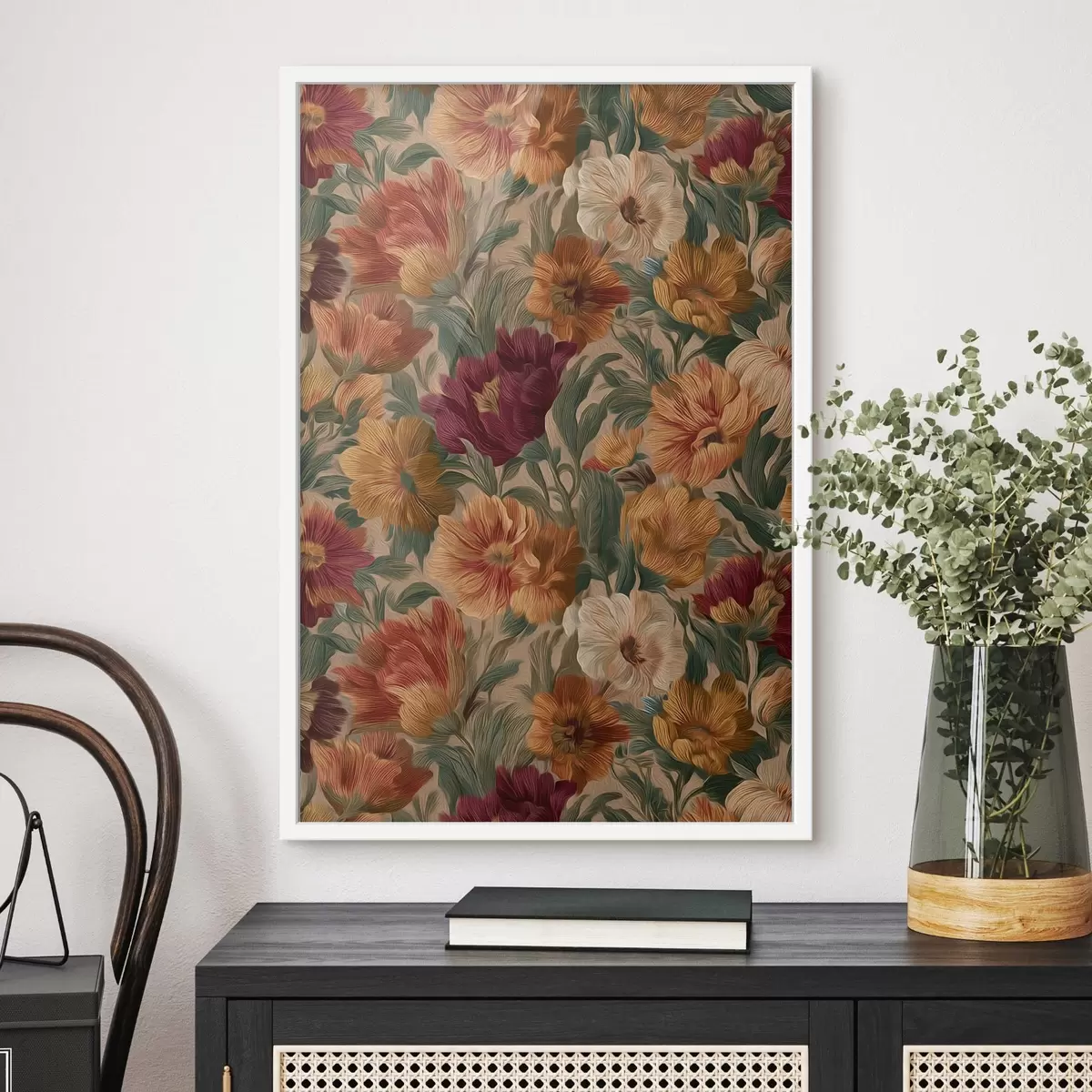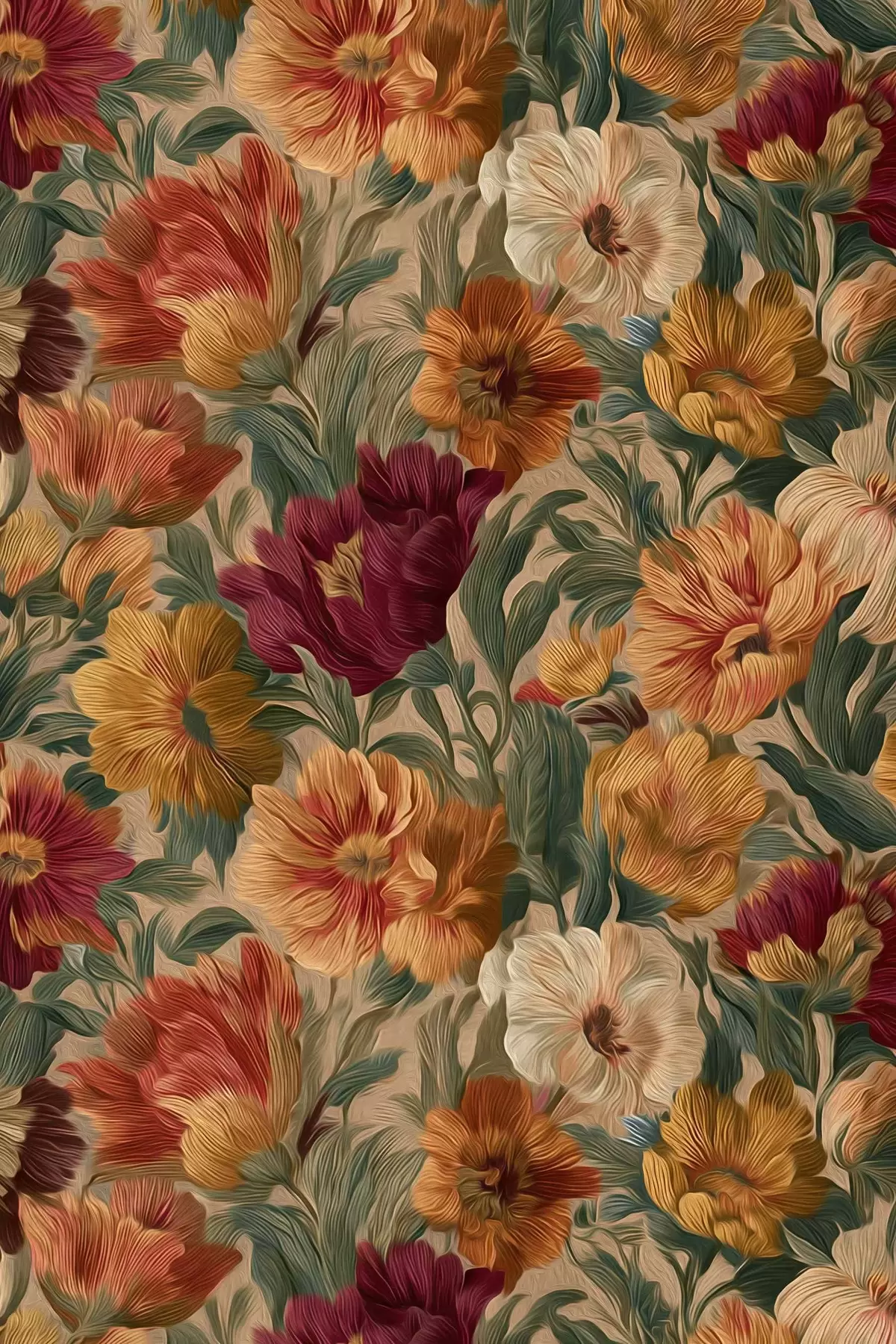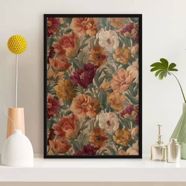 Poster Vintage-Blumenmuster in warmen Farbtönen Nr f45896