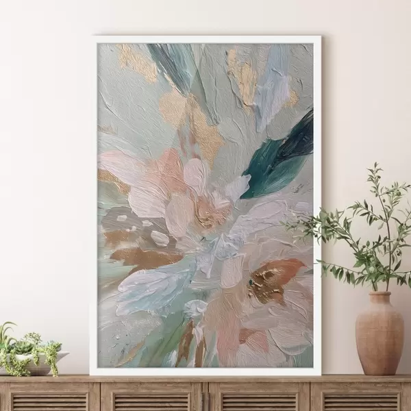 Poster Pastellfarbene Blumenstriche mit gelben Sprenkeln Nr f45899