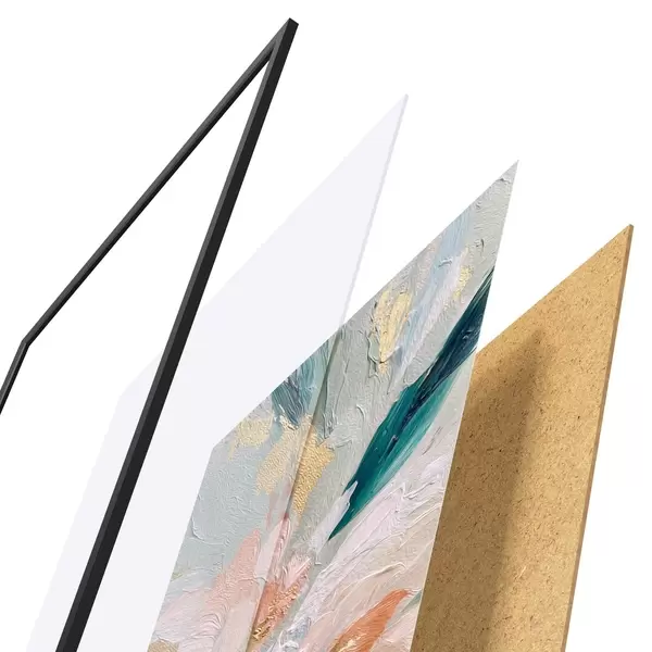 Das Poster besteht aus einem Rahmen, Plexiglas, einem gedruckten Bild und einer Rückwand aus Spanplatten. Dank der Halterungen auf der Rückseite kann das Poster sofort an die Wand gehängt werden.