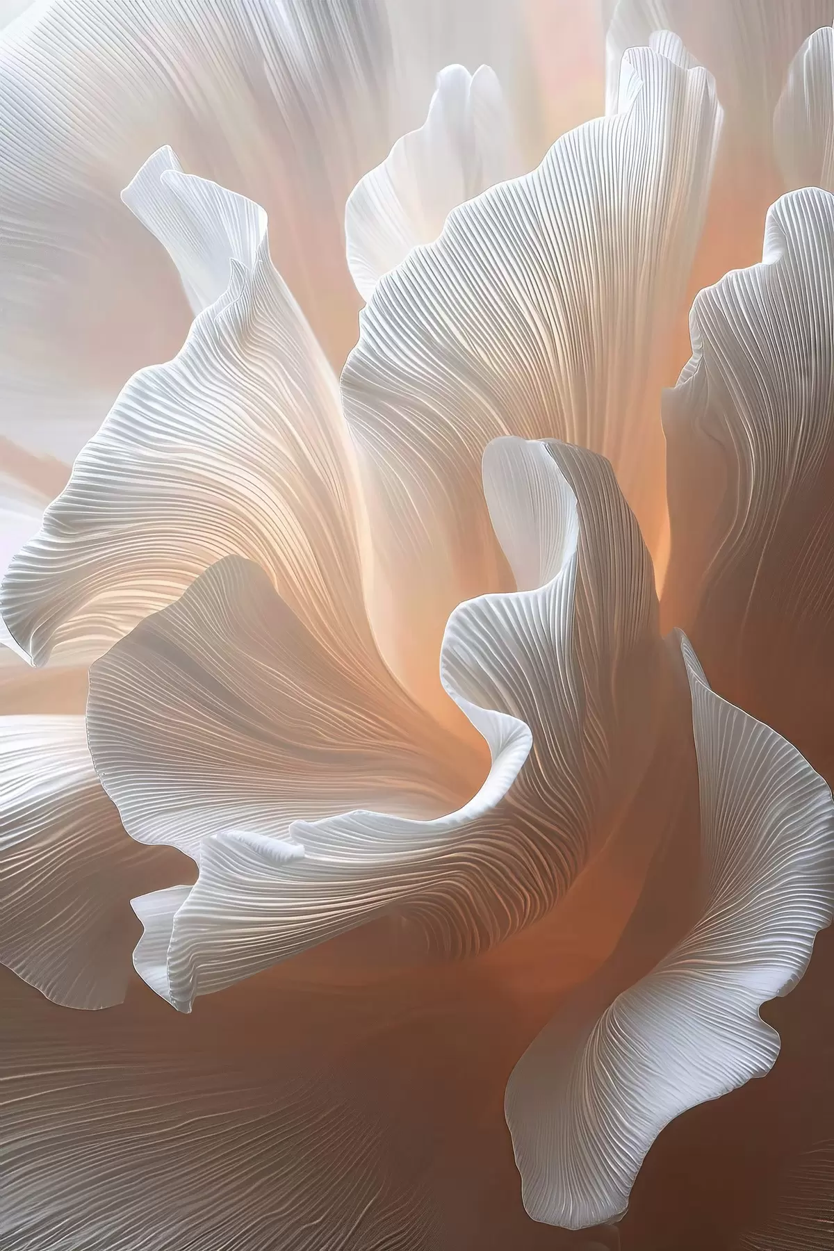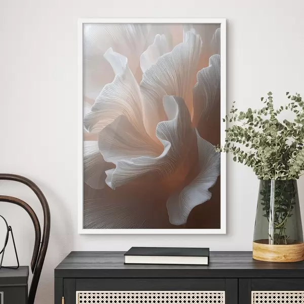 Poster Luftige weiße Blütenblätter mit warmem Pfirsichglanz Nr f45909