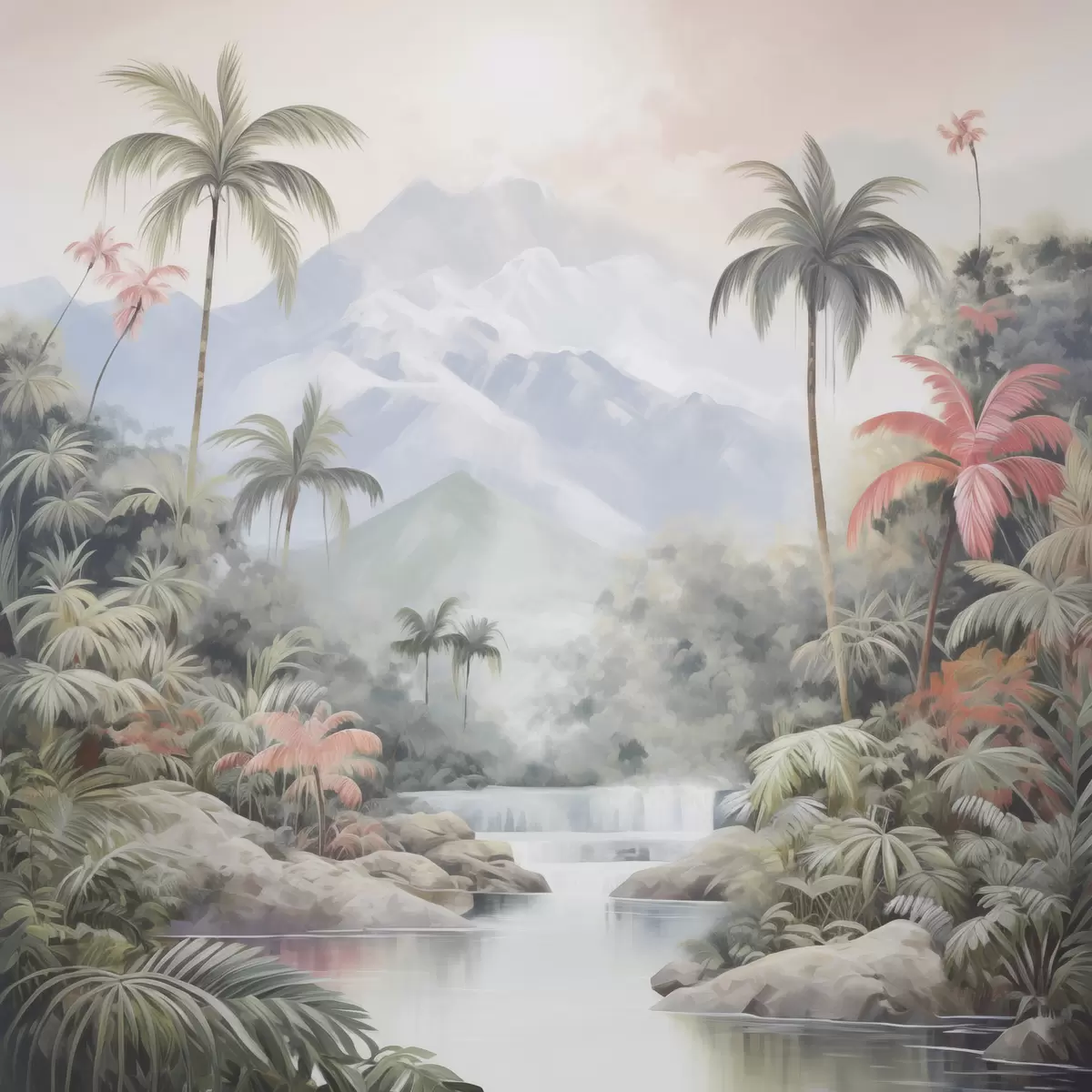 Poster Fluss im tropischen Wald vor Bergen Nr f45913