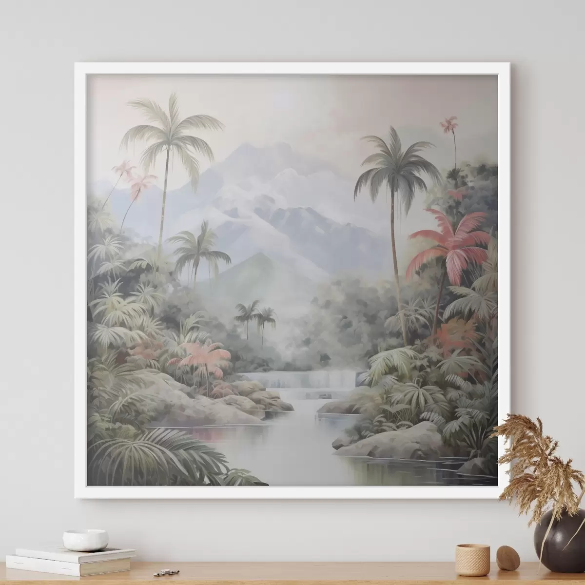 Poster Fluss im tropischen Wald vor Bergen f45913
