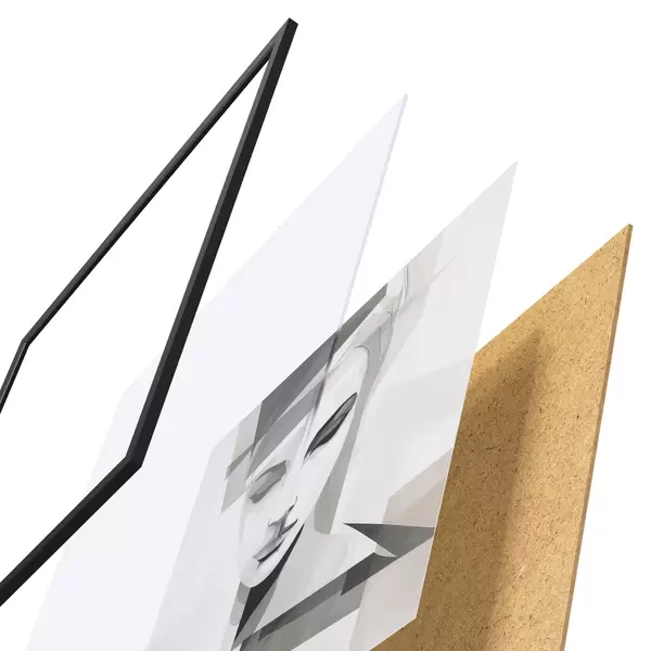Das Poster besteht aus einem Rahmen, Plexiglas, einem gedruckten Bild und einer Rückwand aus Spanplatten. Dank der Halterungen auf der Rückseite kann das Poster sofort an die Wand gehängt werden.