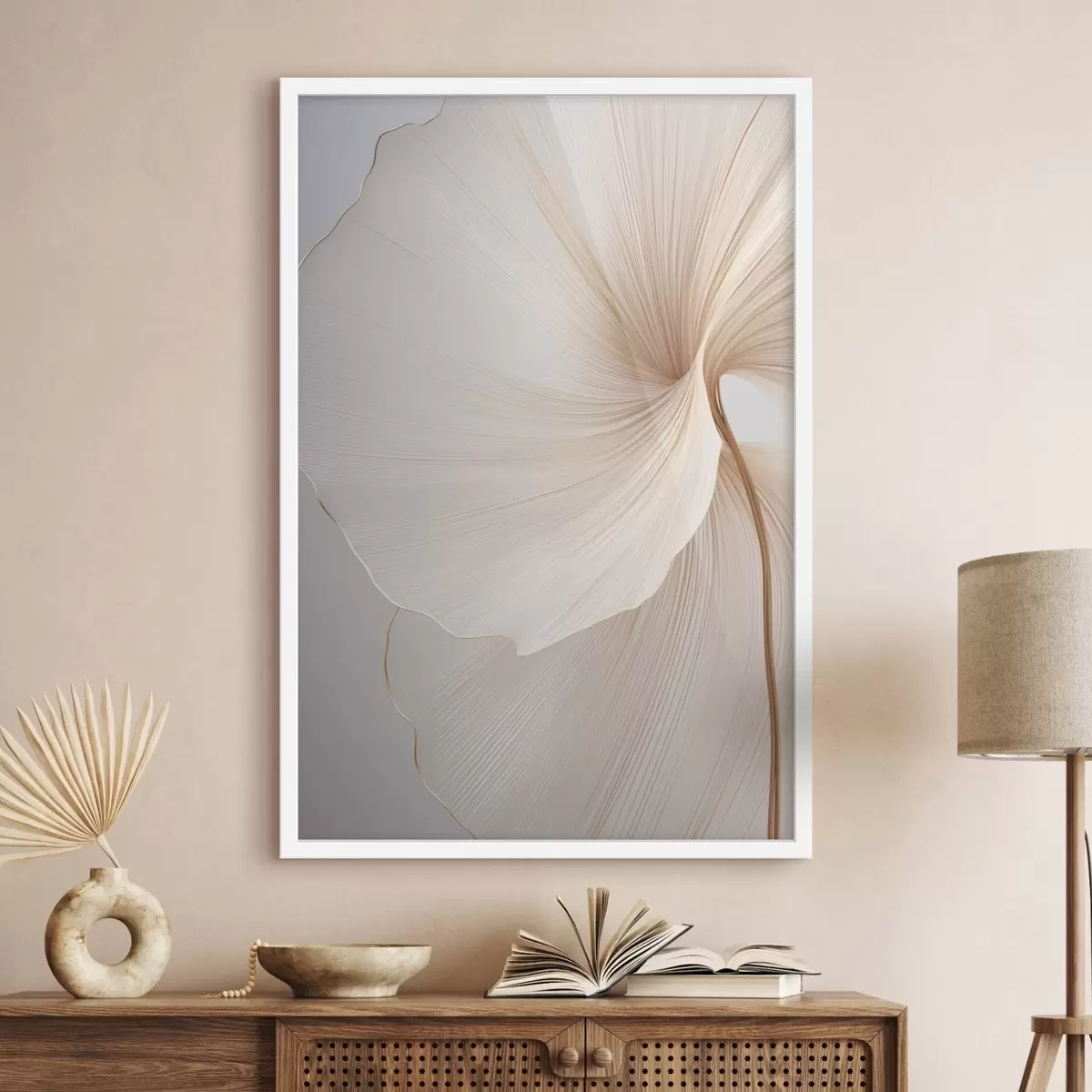 Poster Abstrakte Blumen mit dünnen, zarten Blütenblättern in Weiß- und Beigetönen Nr f45922