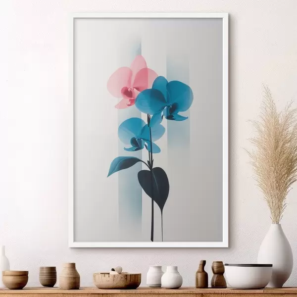 Poster Orchideen mit Blättern auf weißem Hintergrund mit vertikalen Streifen Nr f45925