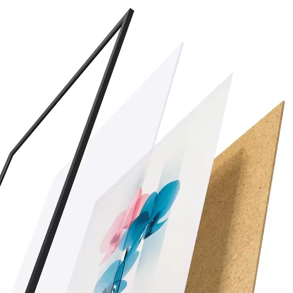 Das Poster besteht aus einem Rahmen, Plexiglas, einem gedruckten Bild und einer Rückwand aus Spanplatten. Dank der Halterungen auf der Rückseite kann das Poster sofort an die Wand gehängt werden.