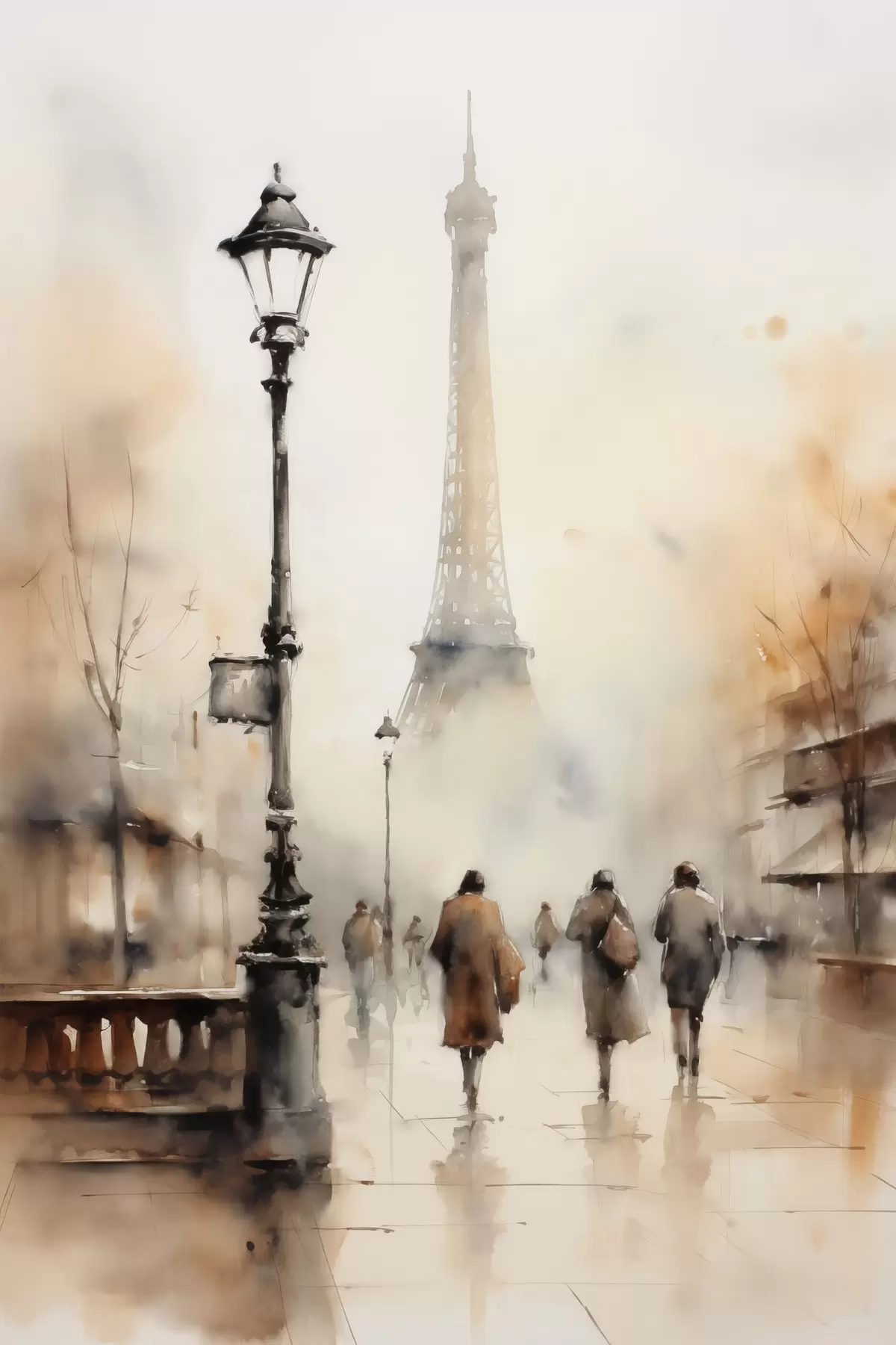 Poster Ein regnerischer Herbsttag in Paris mit dem Eiffelturm im Hintergrund und Vintage-Straßenlaternen Nr f45931