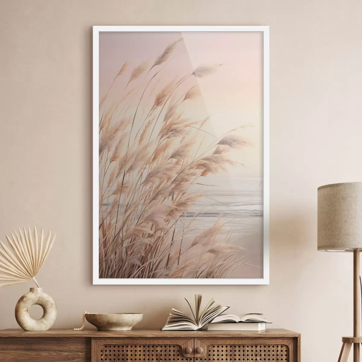 Poster Pampasgras mit pastelloranger Farbpalette, hellrosa Himmel, eine ruhige Landschaft Nr f45934