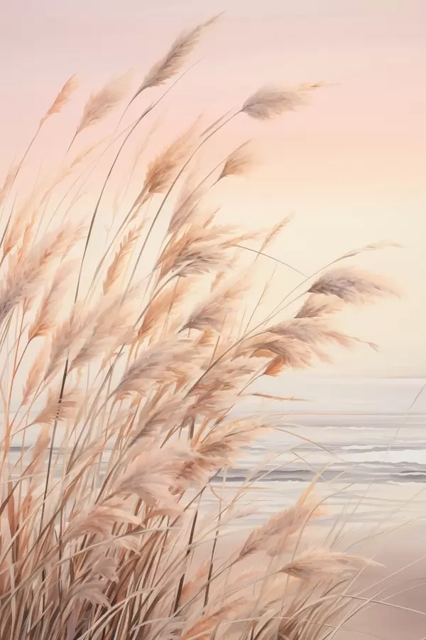 Poster Pampasgras mit pastelloranger Farbpalette, hellrosa Himmel, eine ruhige Landschaft f45934