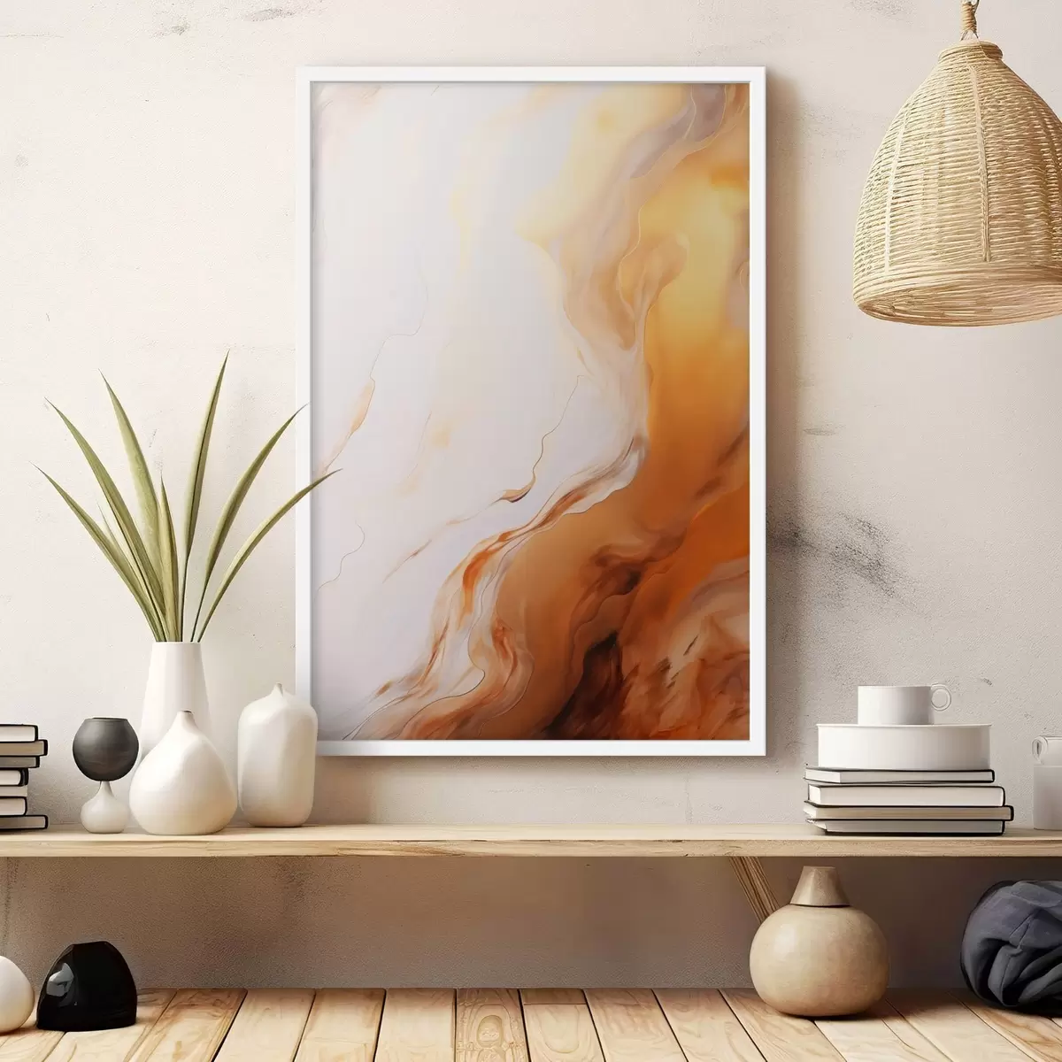 Poster Abstrakte Malerei-Imitation in Weiß und Orange, Fluid Art mit wellenförmigen Linien, moderne Kunst f45939