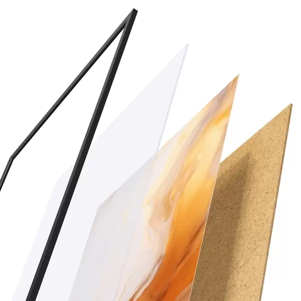 Das Poster besteht aus einem Rahmen, Plexiglas, einem gedruckten Bild und einer Rückwand aus Spanplatten. Dank der Halterungen auf der Rückseite kann das Poster sofort an die Wand gehängt werden.