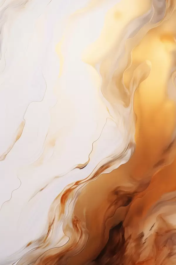 Poster Abstrakte Malerei-Imitation in Weiß und Orange, Fluid Art mit wellenförmigen Linien, moderne Kunst f45939