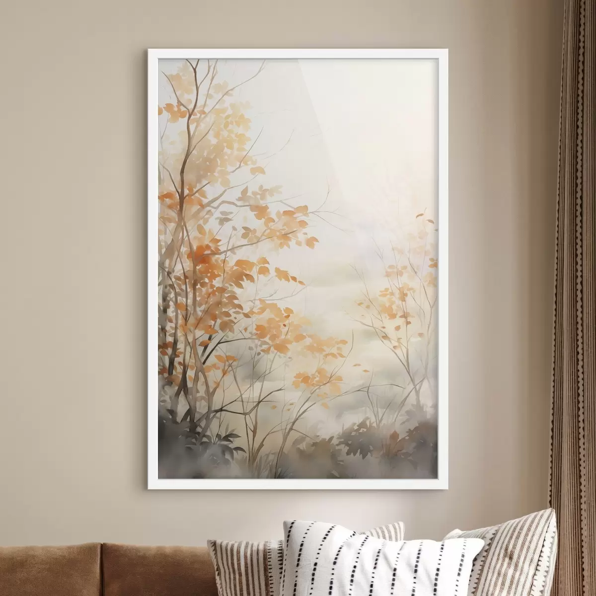Poster Herbstbäume mit orangefarbenen Blättern und Zweigen, sanfter Aquarellstil, zarte Pinselstriche Nr f45941