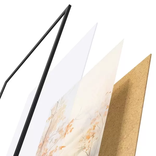 Das Poster besteht aus einem Rahmen, Plexiglas, einem gedruckten Bild und einer Rückwand aus Spanplatten. Dank der Halterungen auf der Rückseite kann das Poster sofort an die Wand gehängt werden.