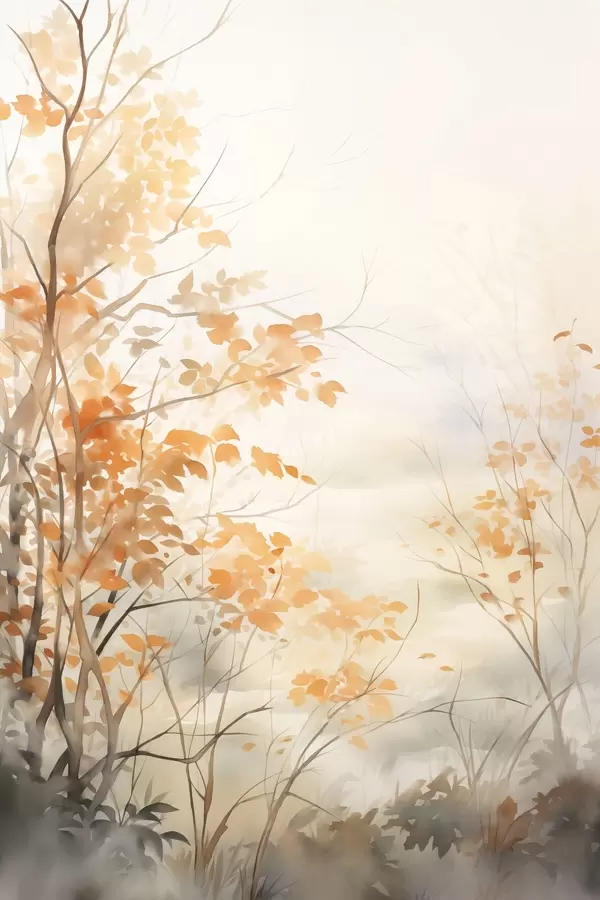 Poster Herbstbäume mit orangefarbenen Blättern und Zweigen, sanfter Aquarellstil, zarte Pinselstriche Nr f45941