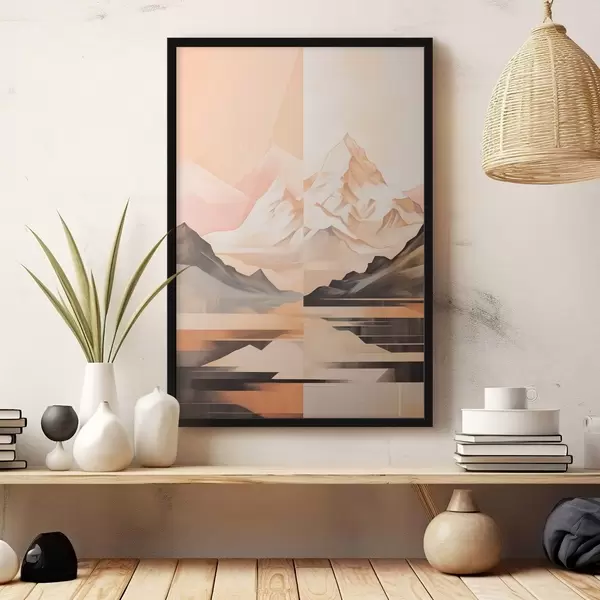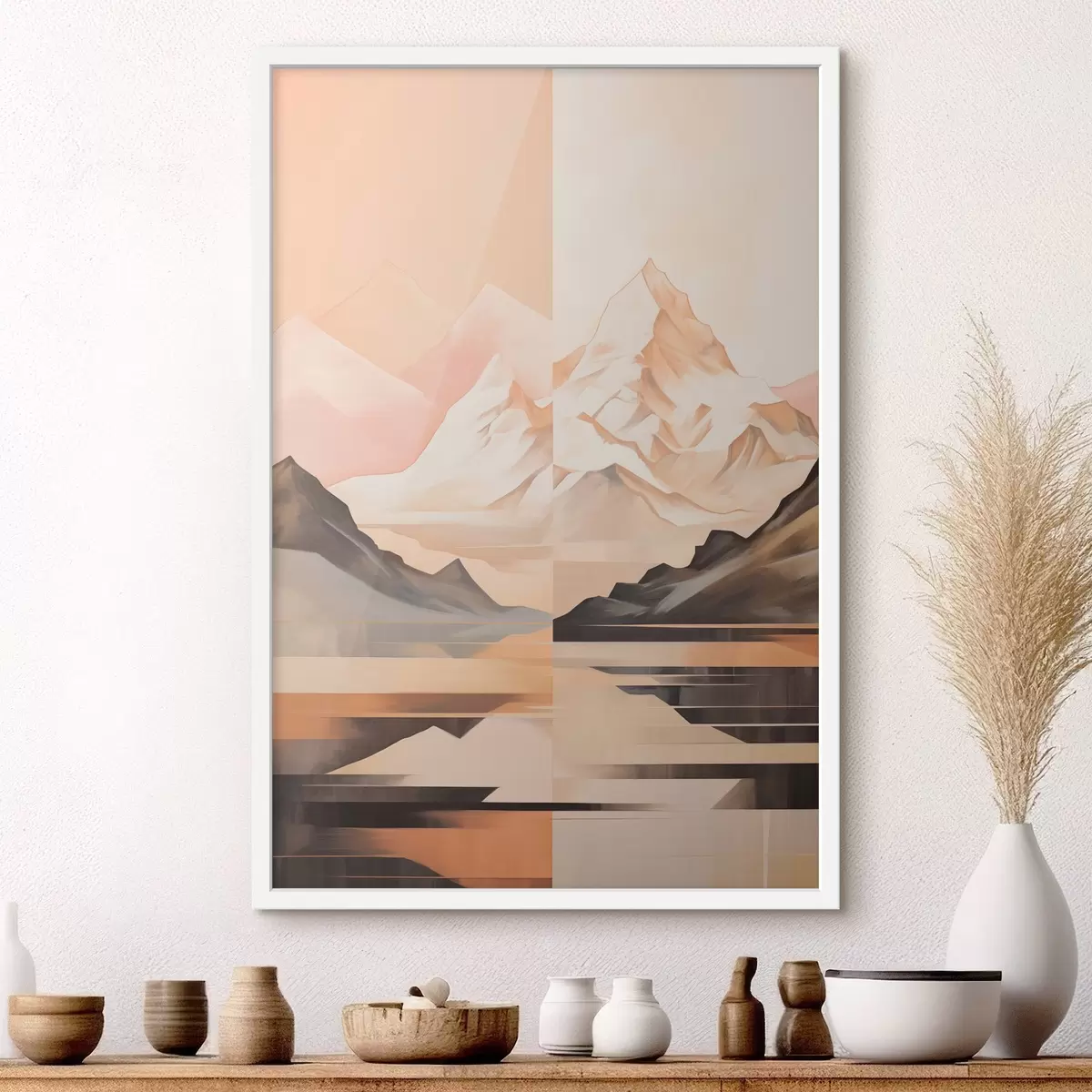 Poster Abstrakte Landschaft mit Bergen und einem See, Pastellfarben, minimalistischer Stil Nr f45948