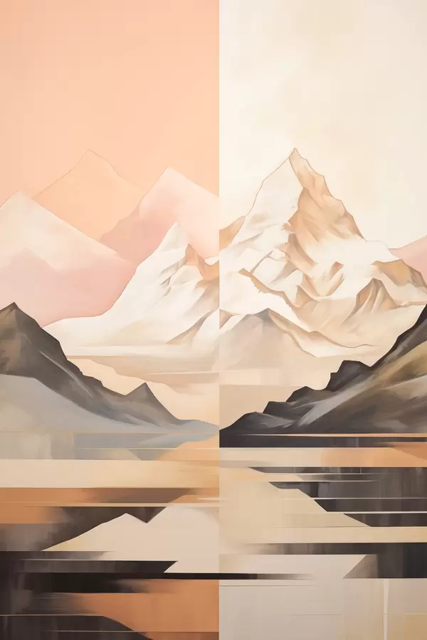 Poster Abstrakte Landschaft mit Bergen und einem See, Pastellfarben, minimalistischer Stil Nr f45948
