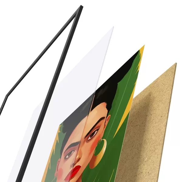Das Poster besteht aus einem Rahmen, Plexiglas, einem gedruckten Bild und einer Rückwand aus Spanplatten. Dank der Halterungen auf der Rückseite kann das Poster sofort an die Wand gehängt werden.