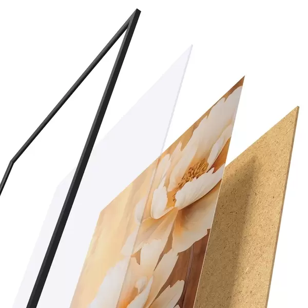 Das Poster besteht aus einem Rahmen, Plexiglas, einem gedruckten Bild und einer Rückwand aus Spanplatten. Dank der Halterungen auf der Rückseite kann das Poster sofort an die Wand gehängt werden.