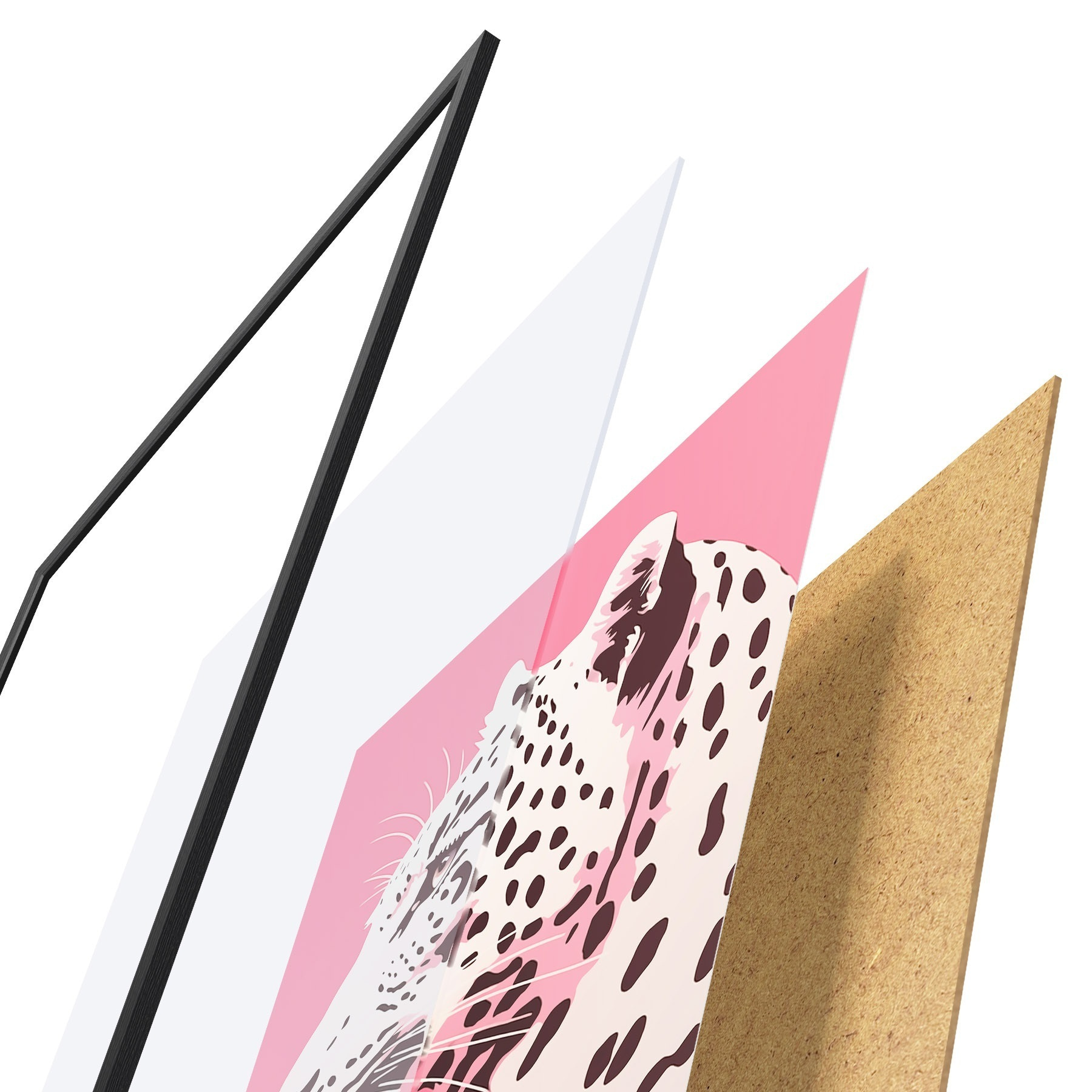 Das Poster besteht aus einem Rahmen, Plexiglas, einem gedruckten Bild und einer Rückwand aus Spanplatten. Dank der Halterungen auf der Rückseite kann das Poster sofort an die Wand gehängt werden.