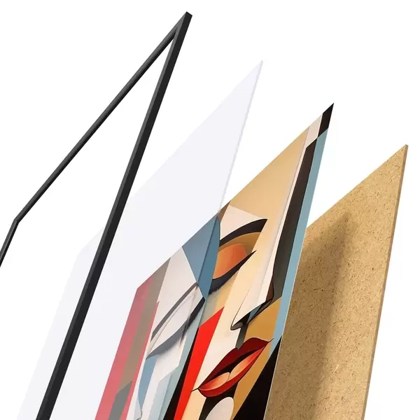 Das Poster besteht aus einem Rahmen, Plexiglas, einem gedruckten Bild und einer Rückwand aus Spanplatten. Dank der Halterungen auf der Rückseite kann das Poster sofort an die Wand gehängt werden.