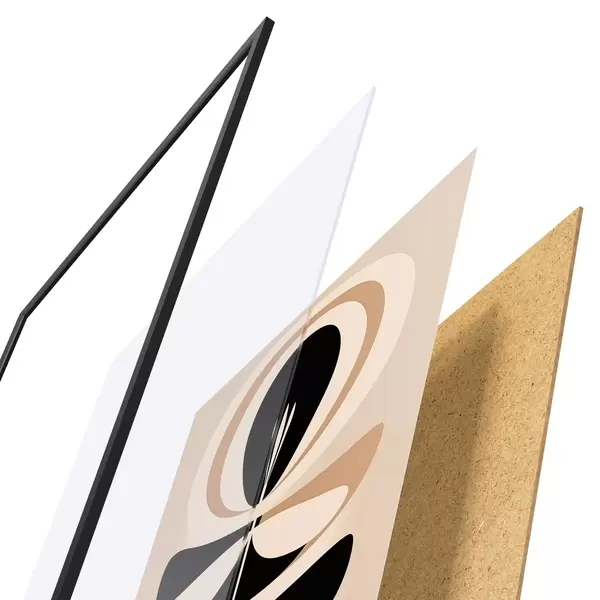 Das Poster besteht aus einem Rahmen, Plexiglas, einem gedruckten Bild und einer Rückwand aus Spanplatten. Dank der Halterungen auf der Rückseite kann das Poster sofort an die Wand gehängt werden.