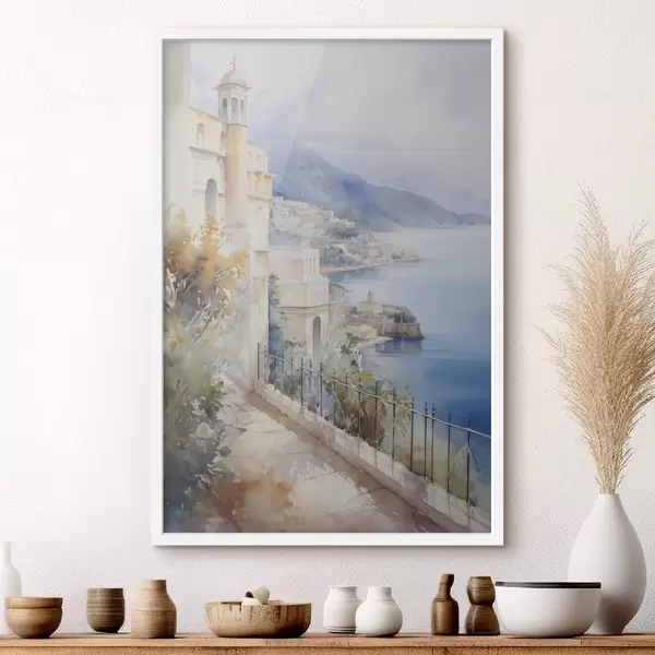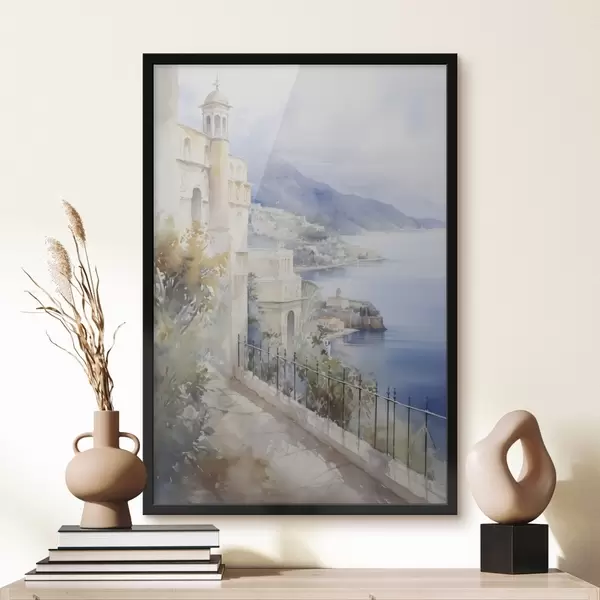 Poster Bucht in der Nähe der Stadt, Aquarellimitation f45979