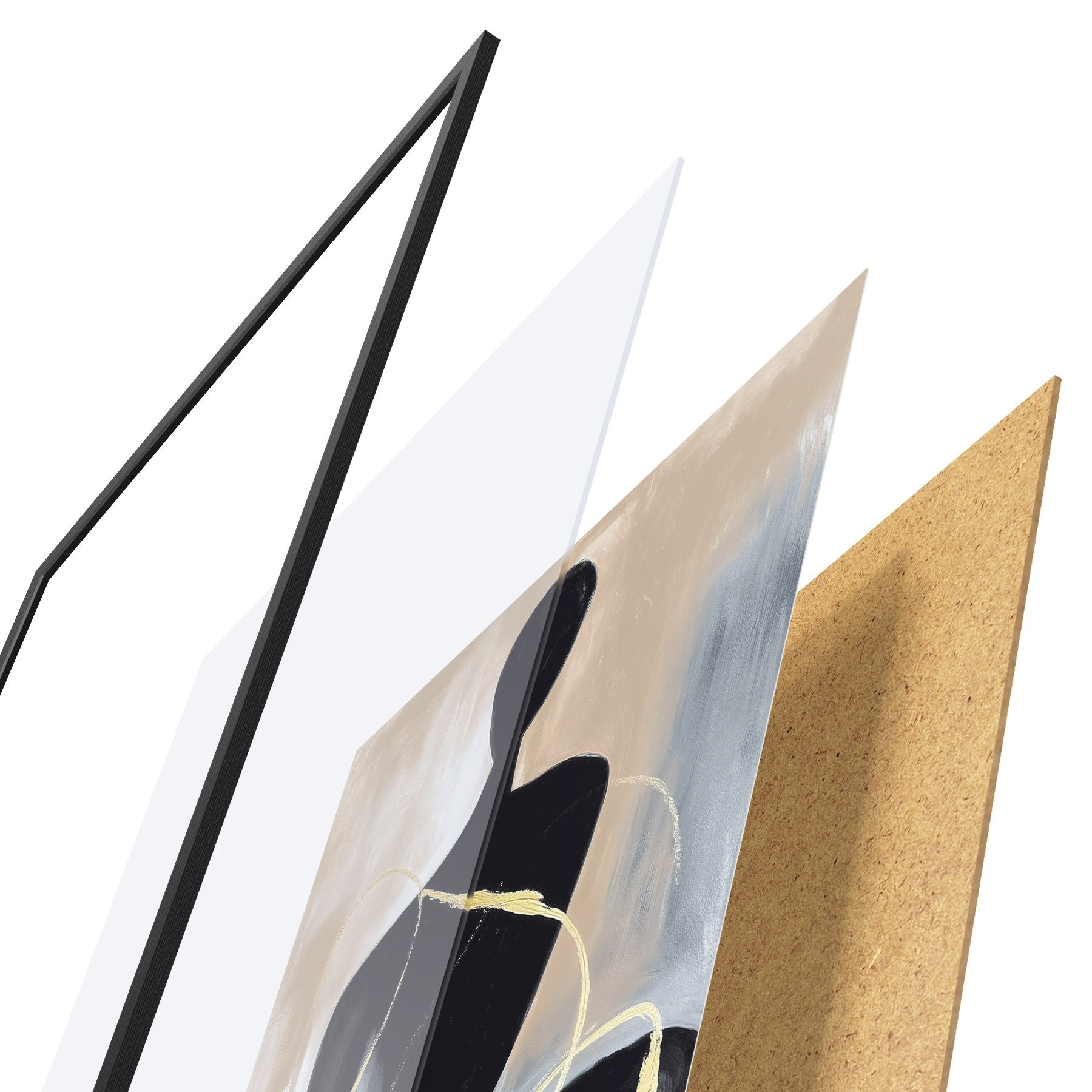 Das Poster besteht aus einem Rahmen, Plexiglas, einem gedruckten Bild und einer Rückwand aus Spanplatten. Dank der Halterungen auf der Rückseite kann das Poster sofort an die Wand gehängt werden.