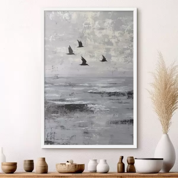 Poster Abstrakte Landschaft mit Vögeln Nr f45988