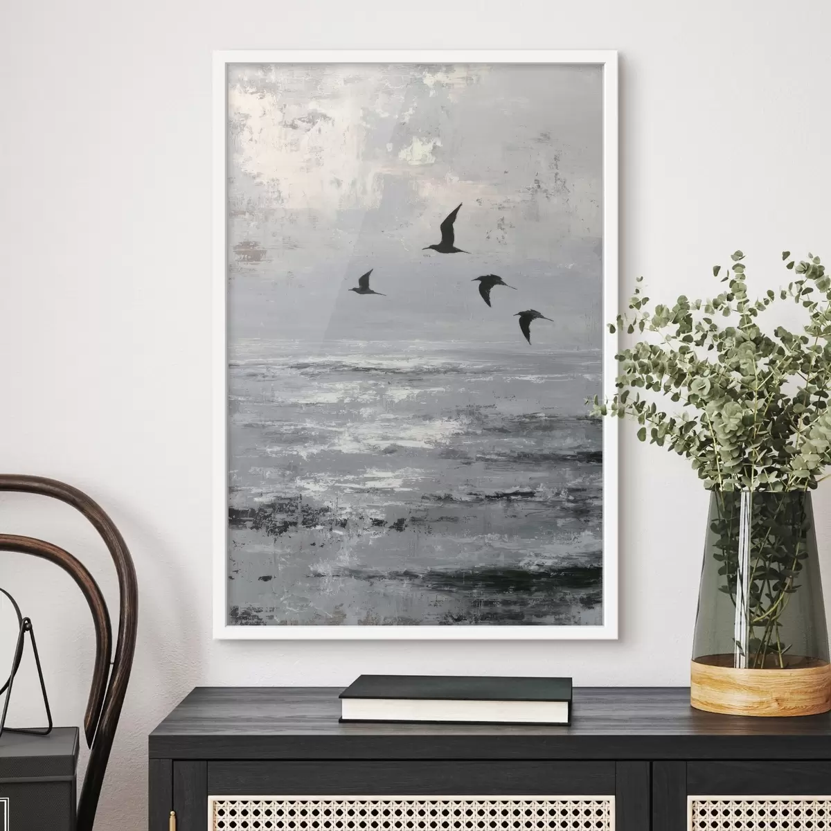 Poster Abstrakte Landschaft mit Vögeln Nr f46004