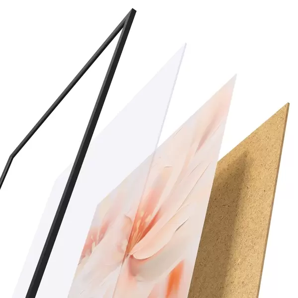 Das Poster besteht aus einem Rahmen, Plexiglas, einem gedruckten Bild und einer Rückwand aus Spanplatten. Dank der Halterungen auf der Rückseite kann das Poster sofort an die Wand gehängt werden.
