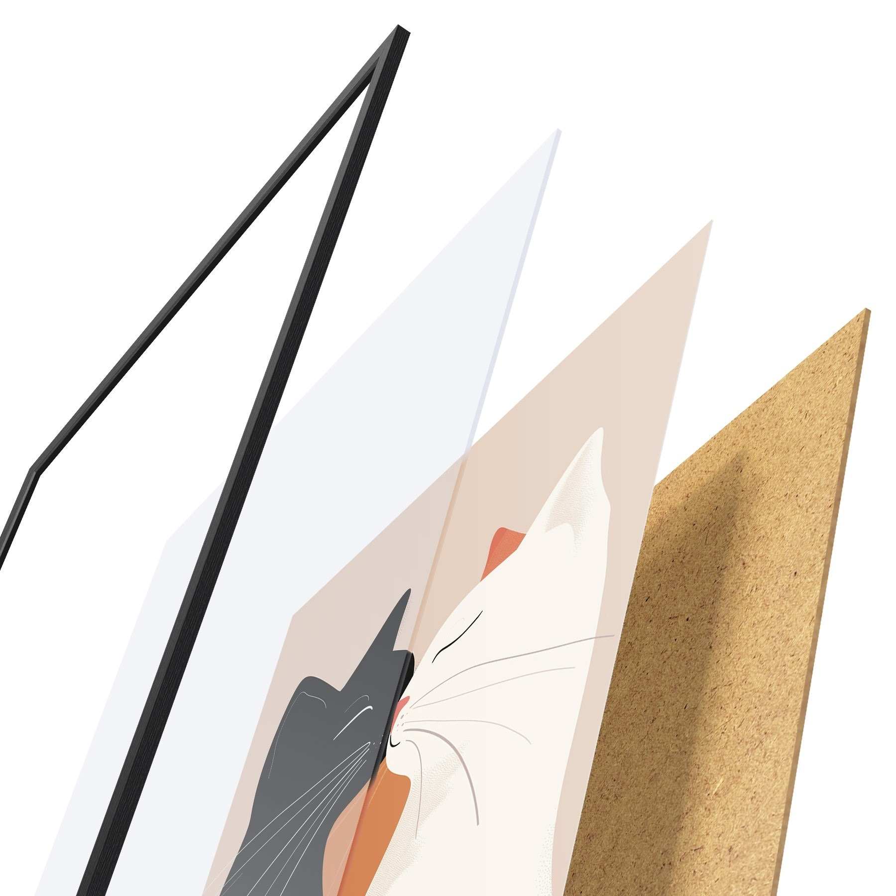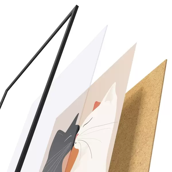 Das Poster besteht aus einem Rahmen, Plexiglas, einem gedruckten Bild und einer Rückwand aus Spanplatten. Dank der Halterungen auf der Rückseite kann das Poster sofort an die Wand gehängt werden.