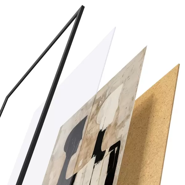 Das Poster besteht aus einem Rahmen, Plexiglas, einem gedruckten Bild und einer Rückwand aus Spanplatten. Dank der Halterungen auf der Rückseite kann das Poster sofort an die Wand gehängt werden.