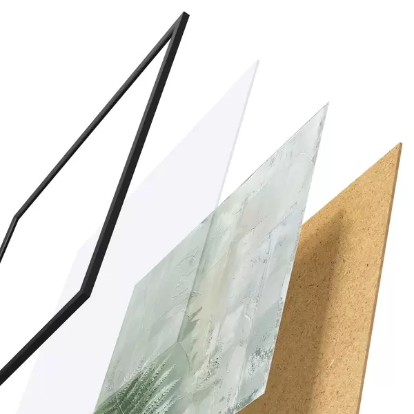Das Poster besteht aus einem Rahmen, Plexiglas, einem gedruckten Bild und einer Rückwand aus Spanplatten. Dank der Halterungen auf der Rückseite kann das Poster sofort an die Wand gehängt werden.