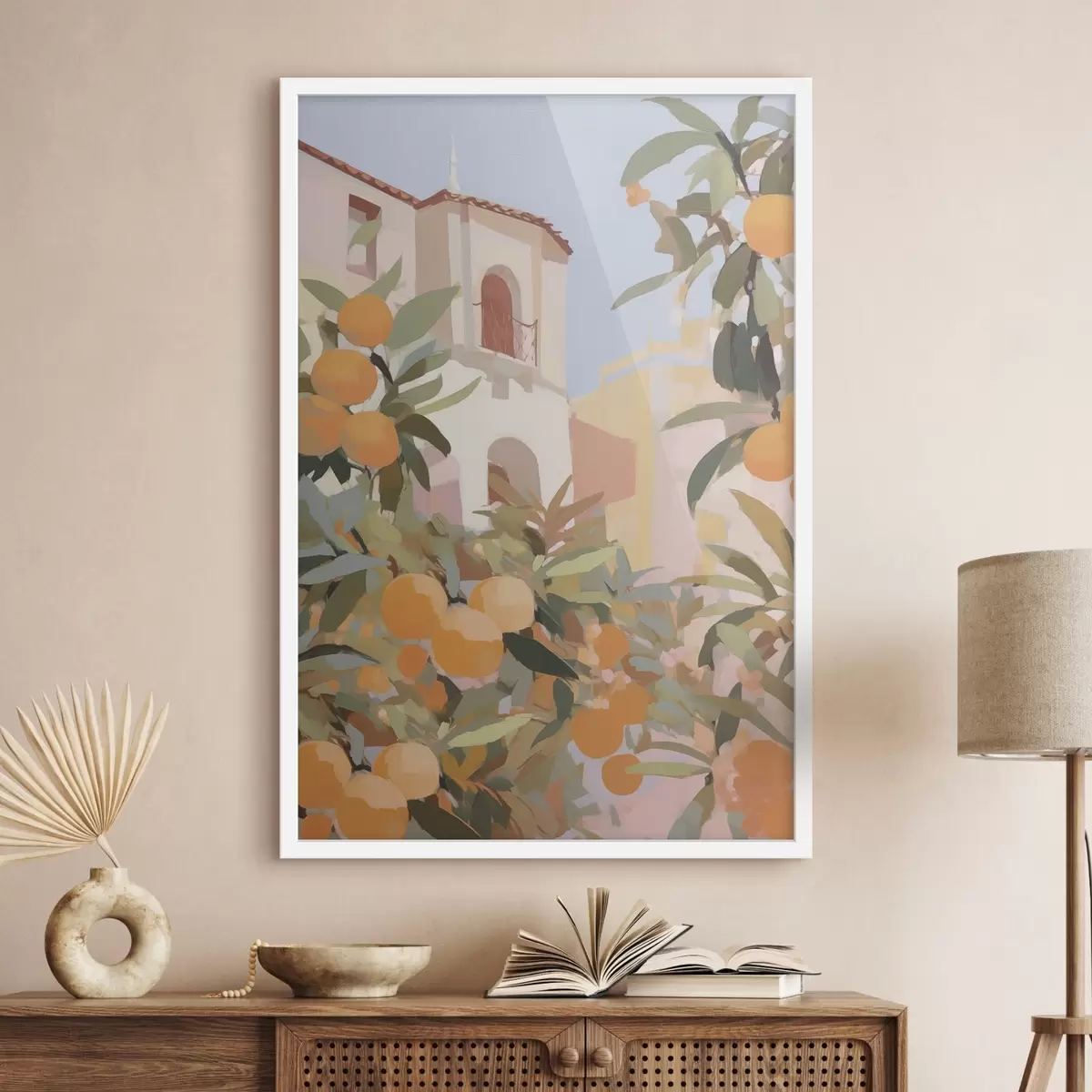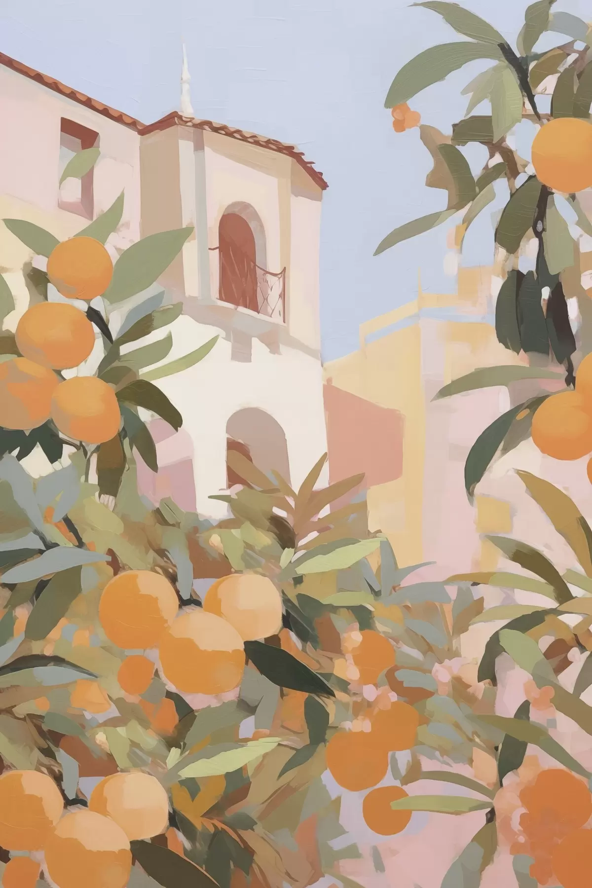 Poster Orangen an einem Ast vor dem Haus Nr f46060
