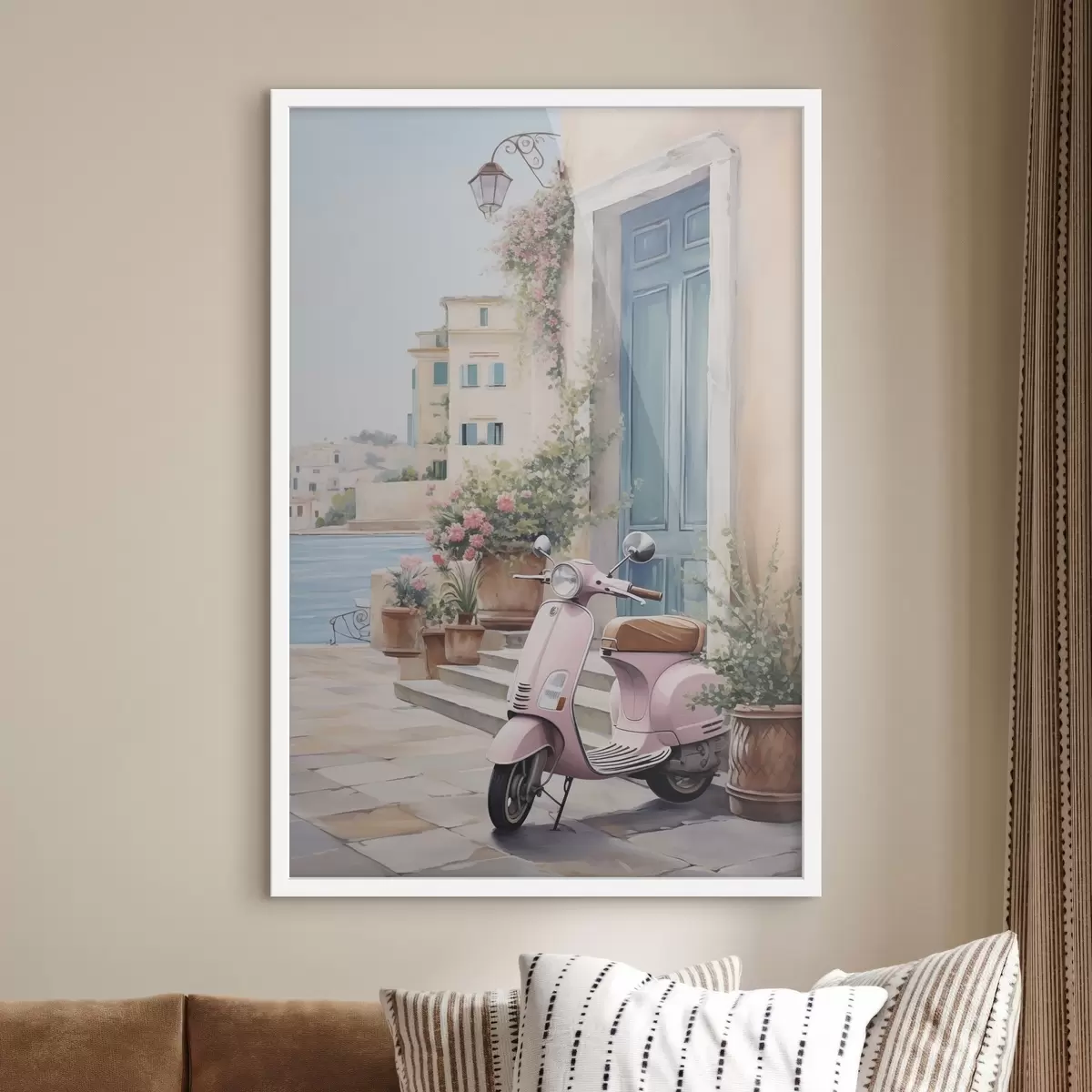 Poster Ein Roller vor dem Hintergrund eines Hauses Nr f46065