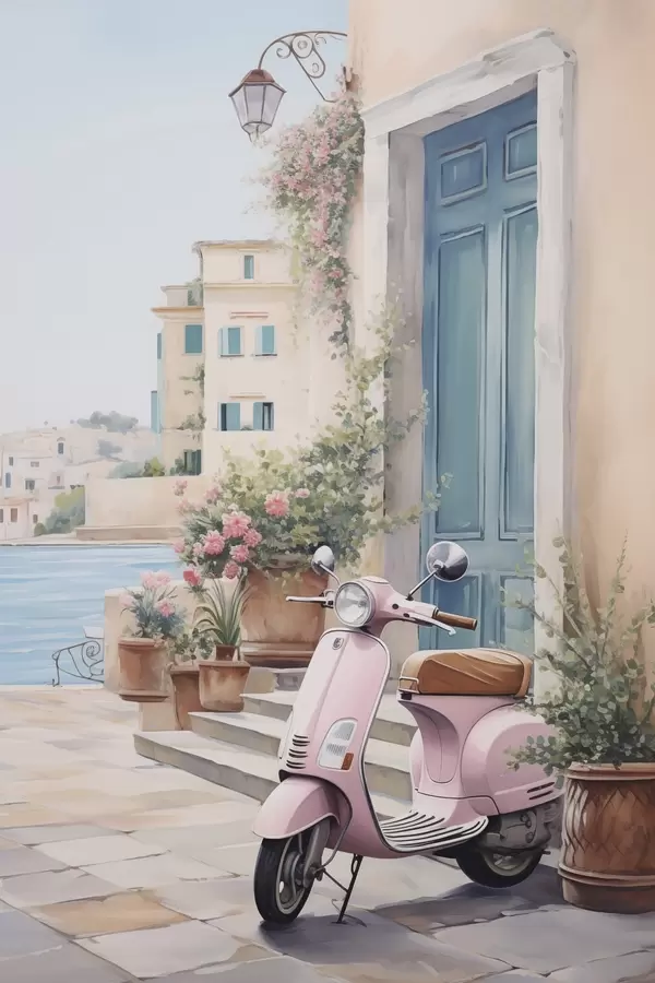 Poster Ein Roller vor dem Hintergrund eines Hauses Nr f46065