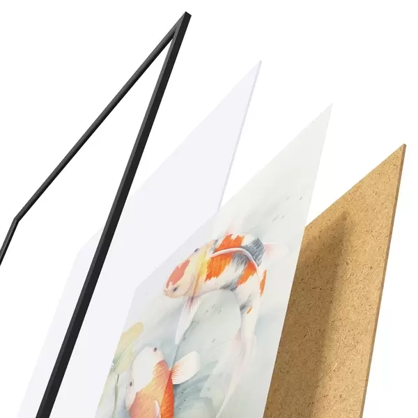 Das Poster besteht aus einem Rahmen, Plexiglas, einem gedruckten Bild und einer Rückwand aus Spanplatten. Dank der Halterungen auf der Rückseite kann das Poster sofort an die Wand gehängt werden.