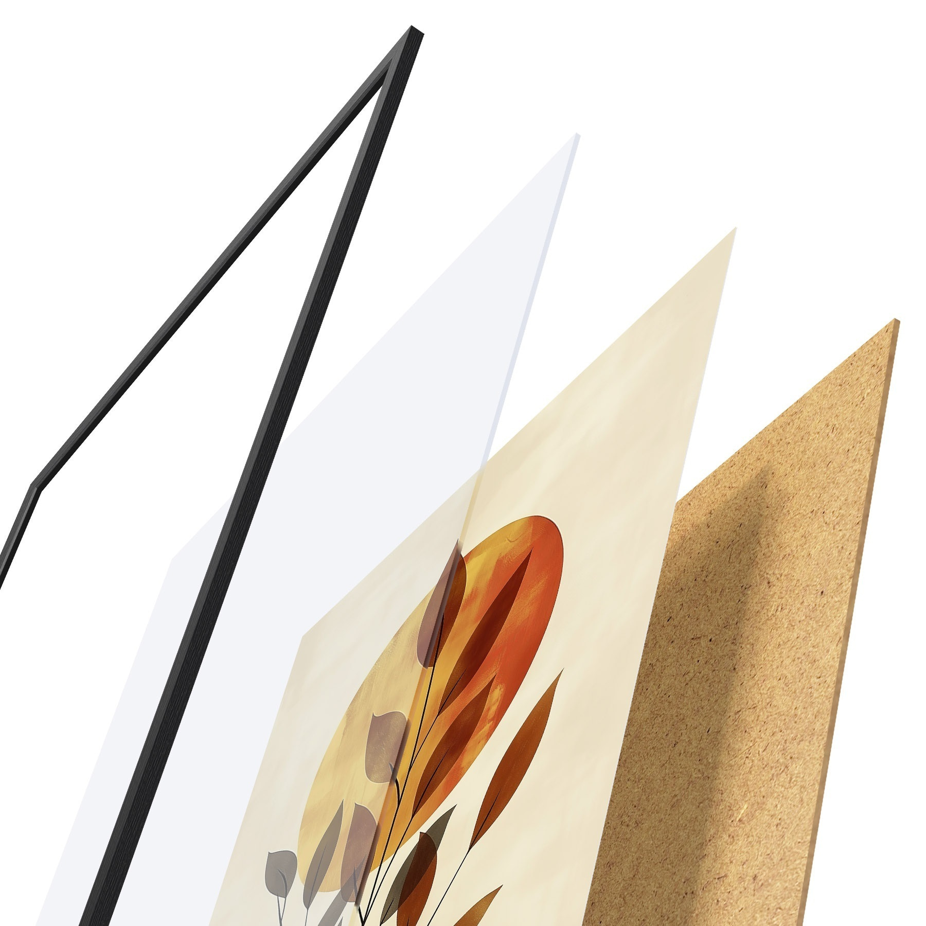 Das Poster besteht aus einem Rahmen, Plexiglas, einem gedruckten Bild und einer Rückwand aus Spanplatten. Dank der Halterungen auf der Rückseite kann das Poster sofort an die Wand gehängt werden.