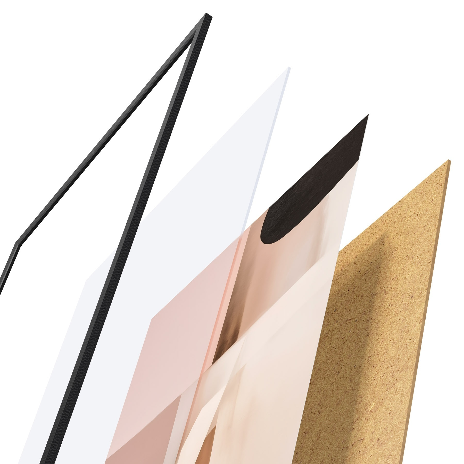 Das Poster besteht aus einem Rahmen, Plexiglas, einem gedruckten Bild und einer Rückwand aus Spanplatten. Dank der Halterungen auf der Rückseite kann das Poster sofort an die Wand gehängt werden.