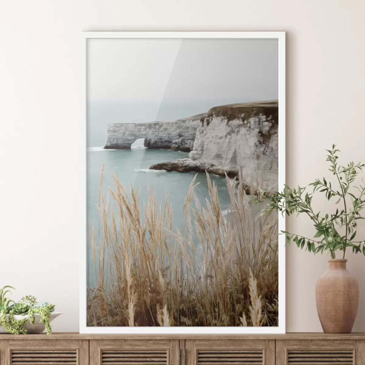 Poster Küstenklippen mit Schilf im Vordergrund Nr f46141