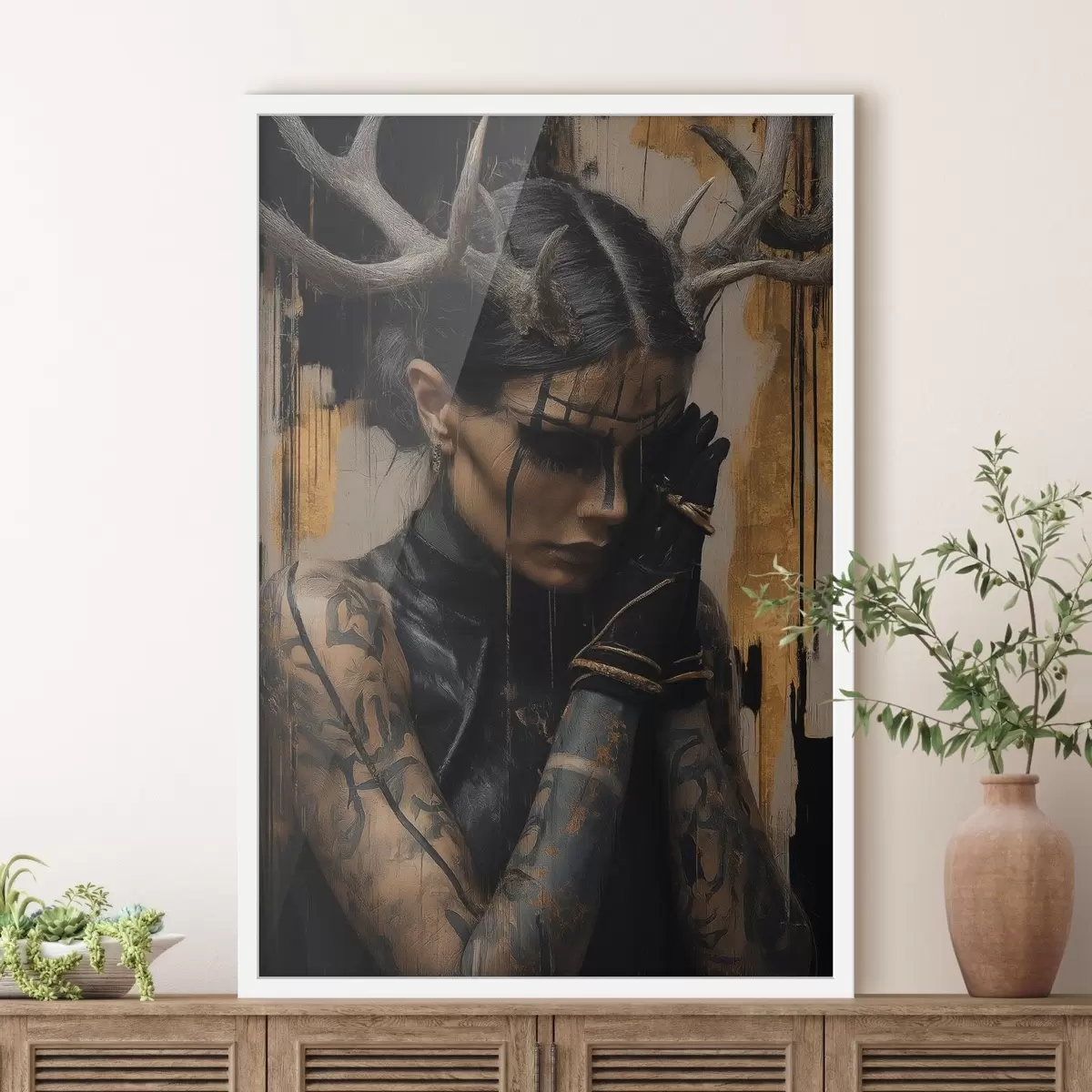 Poster Frau mit Hörnern in einem dunklen Look mit schwarzen Gesichtszügen Nr f46144