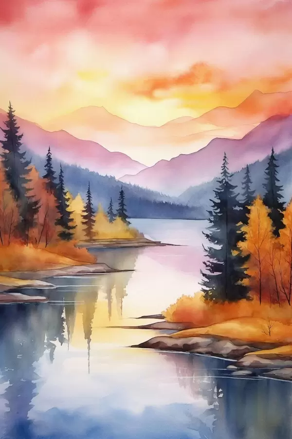 Poster Herbstlandschaft am See mit strahlendem Himmel Nr f46155