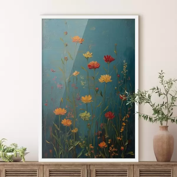 Poster Wildblumen auf tief türkisfarbenem Hintergrund Nr f46169