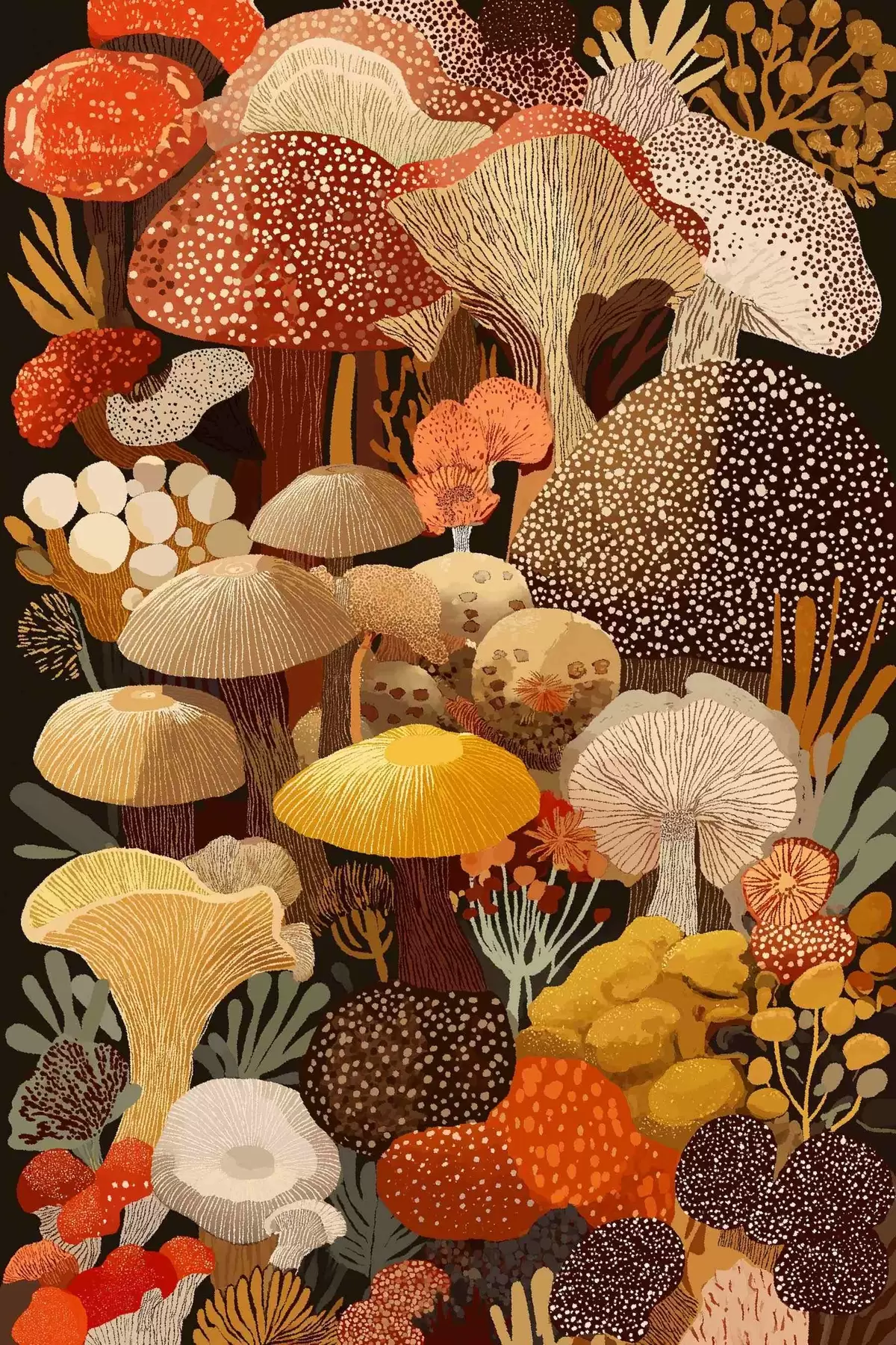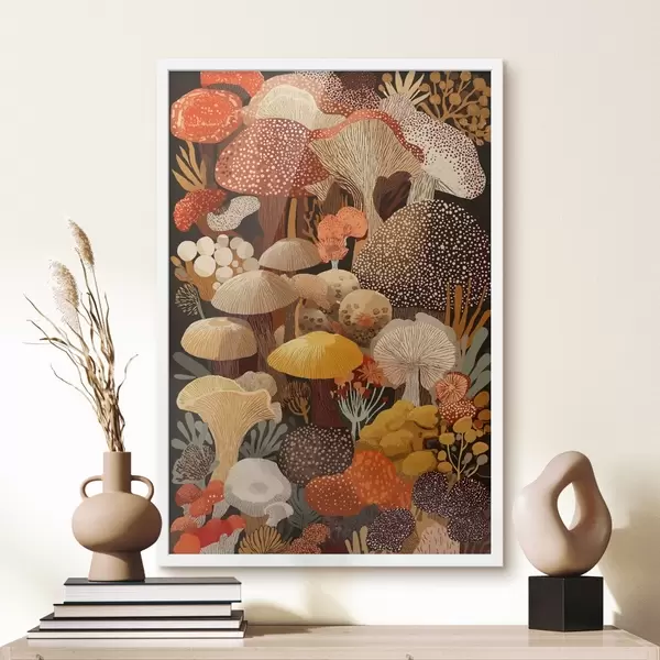 Poster Komposition verschiedener Waldpilze in warmen Farbtönen Nr f46170